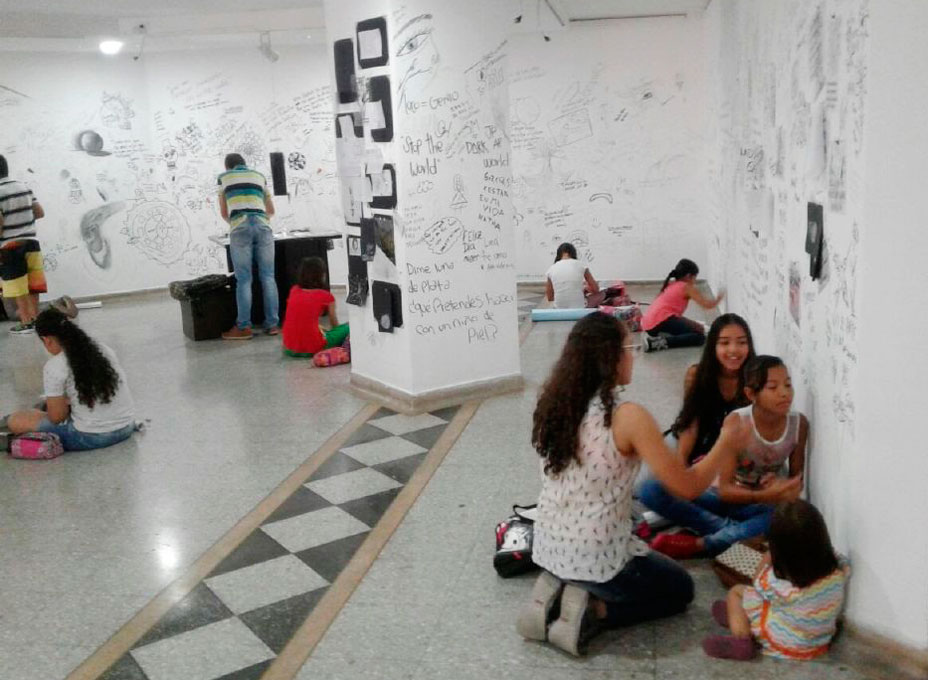 La sala recibió a la luna como visitante en su periodo lunar, sobre-escrito por los artistas y los pereiranos que podrán interactuar con la obra en cada una de sus fases, que servirán de lienzo a las acciones del público en la sala.
